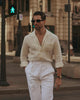 Pleated White Linen Herringbone Pant